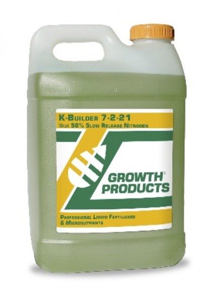 K-Builder provides an ideal ratio of potash to nitrogen to improve stress tolerance to traffic, drought, and winter.  Featuring super-effective potassium carbonate as its K source, K-Builder supplies all nutrients in an available form for the plants’ immediate uptake, so less can be applied and there is no lag time or delay needed for product breakdown.  Like all Growth Products fertilizers, K-Builder is a true solution, ideal for spray applications on turf, foliar feeding, and root injection for trees and ornamentals.