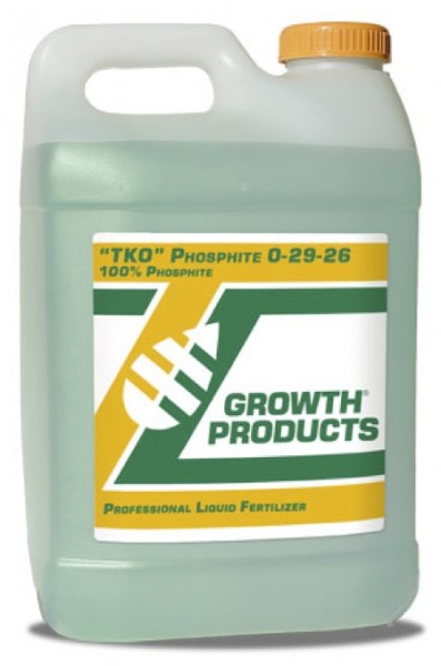 TKO Phosphite 0-29-26 is a clear liquid solution that is highly water soluble and can be quickly absorbed through a plant's leaves, branches, and roots. Once inside a plant, TKO Phosphite is extremely mobile and works to improve resistance to disease, increase overall turf vigor, enhance plant and root development, and rapidly correct deficiencies.