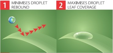 Sticking: Umbrella is a natural adhesive and increases the initial amount of pesticide deposited as well as protecting the chemistry following application. This is especially important on plants with large, steep angles leaves which are prone to shedding applied solution.